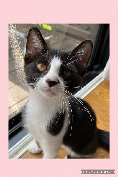 | 特徴(性格など) | ハチワレ猫で鼻の横にハート型のホクロ♥️ 初対面の人には人見知りしますが、猫じゃらしで遊んでいるうちに仲良くなれると思います。 慣れてくるといつも人のそばに居ます。撫でて貰うのも大好きです。 ちょっと怖いとシャーっと言ったりすることもありますが、人懐っこい絶対引っ掻いたりはしない子です。 |