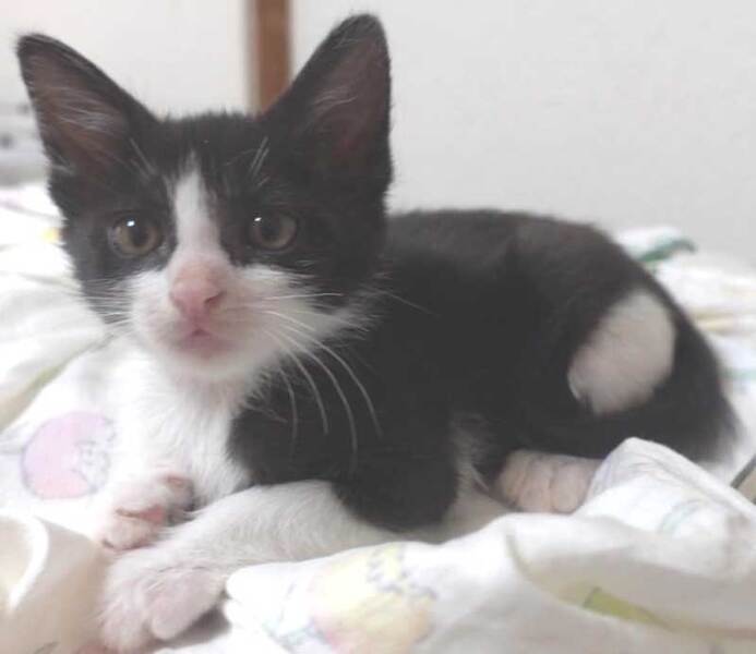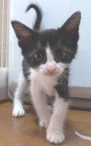 | 特徴(性格など) | 大変かわいらしい黒白美人の子猫の女の子です。 人馴れしています。 好奇心旺盛で元気です。 是非シェルターにお越しください。 |