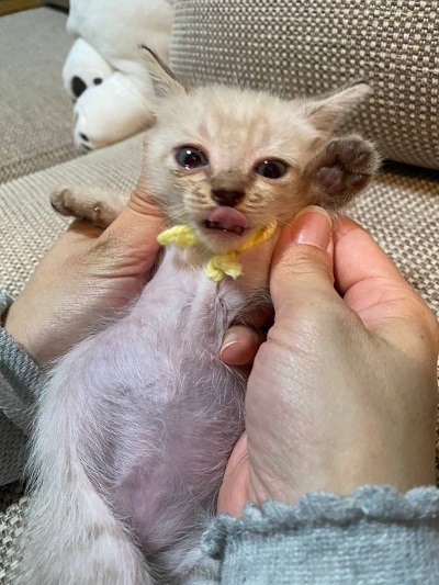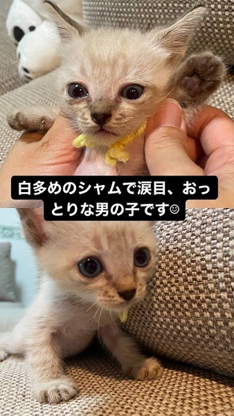 | 特徴(性格など) | 駆虫薬済(7/15) 脱力系の甘えん坊な男の子です。 兄弟猫や母猫に甘えてはすぐ寝ちゃう(笑)愛されキャラです。 ※沢山の兄弟と過ごしてきた子なので出来れば兄弟で飼ってくれる方優先でお願いしたいです。 |