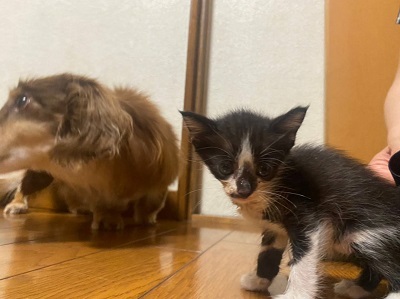 | 里親募集する理由 | ある公園で子猫が鳴いてるとの連絡があり見に行くと 雨の中、1匹だけで鳴きながら寄ってきたので保護しました。 |