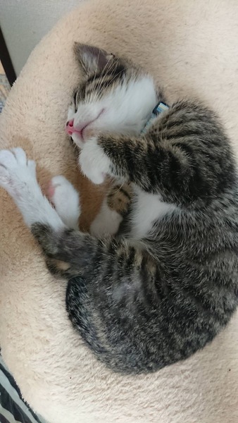 | 里親募集する理由 | 国道の中央分離帯で、脚が骨折した状態でひとりぼっちで鳴いていたところを、たまたま信号待ちで止まった車のドライバーさんが保護してくれました。保護主さんのお家はワンちゃんがいて、猫は飼育出来ないとのことで笑ねこが保護し里親募集に至りました。 | ||