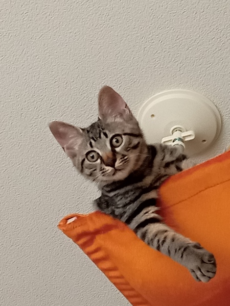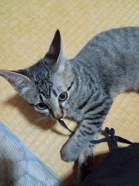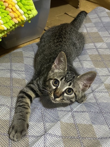 | 特徴(性格など) | キジトラのオス。元気いっぱい、遊ぶの大好きです!とにかくじっとしていないです。猫エイズ、猫白血病ともに陰性。3種混合ワクチン2回接種済。駆虫済。 | ||
