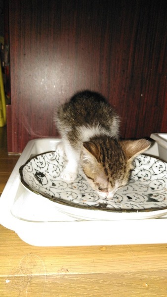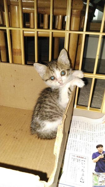 | 里親募集する理由 | 7月14日に近所の道路にて保護しました。1匹でさまよってる感じでした。 保護した時の体重は380gでしたが、ご飯をあげるとよく食べてくれます。 このまま保護して飼いたいところなのですが家族がアレルギーを持ってるので残念ながら飼えません。生涯家庭内飼育、不妊手術、ワクチンまで責任持って可愛がってくれる方がいらっしゃれば嬉しいです。よろしくお願いします。 |