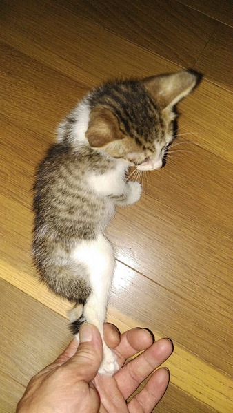 | 特徴(性格など) | 見た目生後2ヶ月ほど。 お腹は白毛、背キジ。しっぽ真っ直ぐ。 性格はお嬢さま、お腹空いてると甘えん坊です。 |
