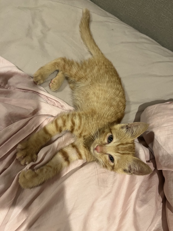 | 特徴(性格など) | 茶トラのオス猫です。とても人懐っこく穏やかな性格の子です。 トイレのしつけ済みで、カリカリとウェットを食べてます。 猫エイズ白血病陰性・ノミダニ駆除済みです。 |