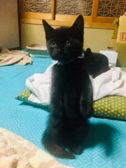 | 特徴(性格など) | 甘えん坊な子猫です。人慣れしていて人懐こいです。 優しく撫でてあげるとゴロゴロとのどをならして喜びます。 お母さんのお乳をよく飲み、最近では離乳食もよく食べています。 健康で走り回りとても元気に遊びます。 親猫が長毛種なので、ふわふわです。 お鼻の横にほくろの様な模様とホワイトソックスがチャームポイントです。 トイレトレーニングも済んでいます。 |