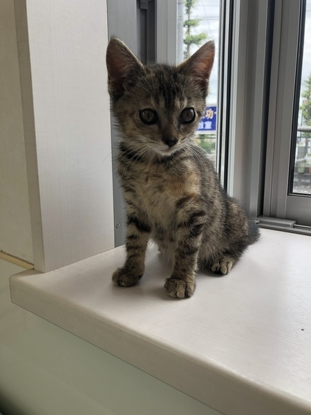 | 里親募集する理由 | 6月28日、うちの駐車場、車の下で鳴いてる所を保護しました。うちでは既に7匹の保護猫を飼育しており、これ以上は困難なため可愛がって下さる方を探しています。 | ||