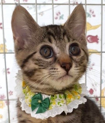 | 里親募集する理由 | 緑道に捨てられ、目もうみでふさがり、ぐったりとしていました。上空をカラスが舞っていたのを見た人が発見して、人を経てわが家に来ました。眼の状態が悪く、3週間入院し、なんとか見えるようになりました。 保護した次の日は大雨だったので、そのままだったら生きていなかったと思います。晴れた日に保護できたので、「はる」という名前にしました。 |