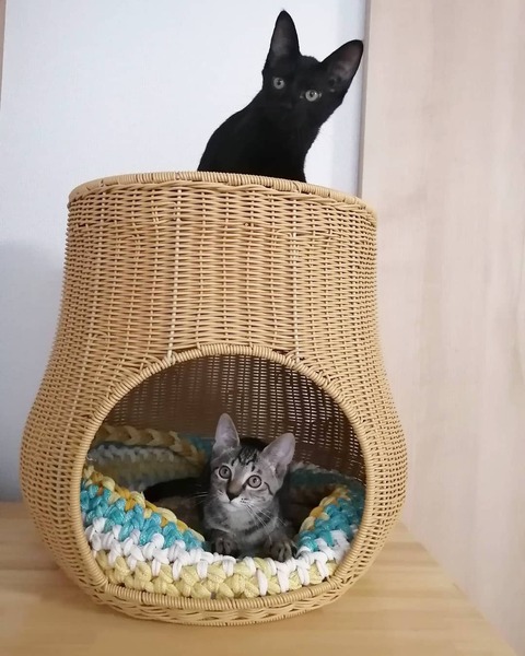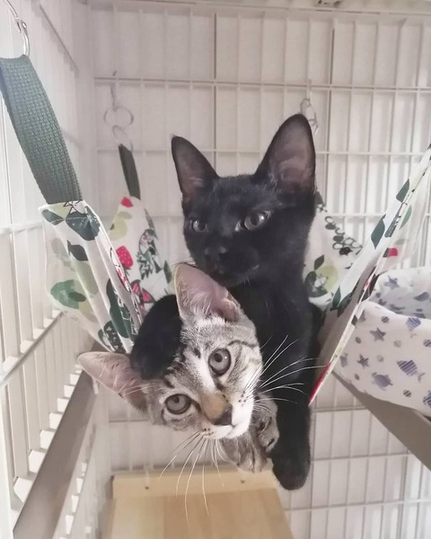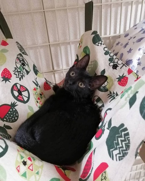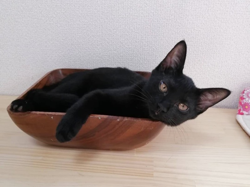 | 特徴(性格など) | 推定2022年4月1日生まれ、黒猫の仮名にこまるくんです。 (我が家へは、2022年6月2日にやってきました) 推定生後1ヶ月半齢まで、お母さん猫と兄弟とお外で暮らしていました。 にこちゃんは、我が家へ来てほんの数日で喉を鳴らしてくれるようになり、元々あまり警戒心のない子ではありましたが、半月ほど前からは1日に何度もお膝にゃんこになってくれています♪ 保護主の私の在宅ワーク中も、ずっとではありませんが、しっかり近くで応援(笑)してくれます。 兄弟のいぶきくんより、人馴れという意味では、今現在一歩先を行く感じです。 いぶきくんの運動神経が良すぎるので、にこちゃんはちょっと鈍く見えてしまいます(笑) ご飯の食いつきは良好! 好き嫌いもありません。 ケージフリーにすると、兄弟でいつも1時間以上走り回っています(笑) そして、急に静かになったなーと思うと、その時々の快適な寝床を見つけて爆睡しています(笑) こてんとお腹を出して眠る姿は、黒いですが、まるで天使のよう♪ (私の目が届かないときは、まだ小さいのでケージに入ってもらっています) ごろごろと喉を鳴らす音は大音量です。 天真爛漫なにこちゃんと好奇心旺盛ないぶちゃん。 とってもいいコンビだと思います!! 保護主のわがままで誠に申し訳ございませんが、にこちゃんは同時募集しております兄弟のいぶきくんとのペア限定でのご縁を探しています。 日々の様子はInstagramにアップしています。 アカウント名 → maruchiyo78 |
