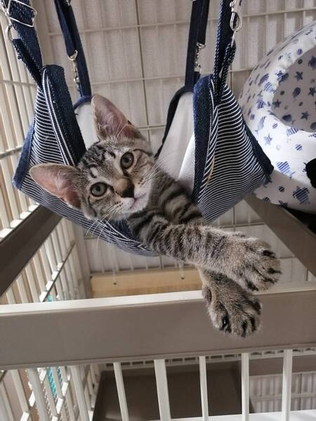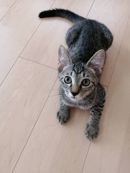 | 特徴(性格など) | 推定2022年4月1日生まれ、キジトラの仮名いぶきくんです。 (我が家へは、2022年6月2日にやってきました) 推定生後1ヶ月半齢まで、お母さん猫と兄弟とお外で暮らしていました。 いぶちゃんは、兄弟のにこまるくんより少しびびりな男の子。 人との距離感は、兄弟のにこまるくんより若干ありますが、運動神経抜群で好奇心が旺盛なので3段ケージの3階に登るのも、タワーのてっぺんを制覇するのもいぶちゃんの方が先でした。 ご飯の食いつきは良好! ご飯ちょうだい、とかわいいニャー付きで催促してくれます♪ ケージフリーにすると、兄弟でいつも1時間以上走り回っています(笑) そして、急に静かになったなーと思うと、その時々の快適な寝床を見つけて爆睡しています(笑) (私の目が届かないときは、まだ小さいのでケージに入ってもらっています) 来た当初よりかなり馴れが進み、近づくと喉を鳴らしてくれるようになりました。 撫でられるのも好きです。 まだ自ら膝に乗ってくることはあまりありませんが、私が眠っているとお腹や背中にくっついて一緒に寝たりもします♪ 私のトイレにも、かなりの頻度でついてきてくれます(笑) が、これからまだどんどん甘えん坊さんになる予感でいっぱいのいぶちゃんです。 ※現在も毎日甘え方が更新されています♪ 大きな瞳の持ち主で、ちょっとたれ目なので、いたいけない風な男の子に見えるかもしれませんが、活発で温厚な男の子です。 いぶちゃんを見ているだけで、元気がもらえること間違いなし!! 保護主のわがままで誠に申し訳ございませんが、いぶちゃんは同時募集しております兄弟のにこまるくんとのペアでのご縁を探しています。 日々の様子はInstagramにアップしています。 アカウント名 → maruchiyo78 |
