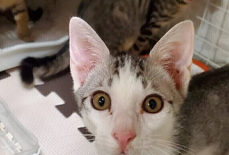 | 特徴(性格など) | ◆ハイパーくん 元気いっぱい、好奇心旺盛のサバ白男の子 ●月齢の小さな子猫は、以下の条件についてご了承の上で応募をご検討下さい。 ◆お留守番の少ないご家族を希望します。 ◆2匹でお迎えくださるご家族を優先いたします。 ◆小さなお子様のいるご家庭は状況によりお断りする場合がございます。 ◆高齢者のみのご家族からの子猫のお申し込みはお受けしていません。 ○沖縄県内にて保護されました。 ○生後5ヶ月ぐらい(2022年10月上旬時点)、体重2.35kg(2022/8/21時点)のサバ白の男の子です。 ◯尻尾はあまり長くなく、先端が丸まったカギ尻尾です。 ◯その名の通り、ハイパーで元気な男の子です。 ◯人懐こいです。 ◯掃除機も大人猫もへっちゃら。好奇心旺盛です。 ◯すくすく育っています。 ◯YouTubeにも動画を上げています。こちらもご覧下さい。 「ハイパー」 https://youtube.com/shorts/ONrOJl3gkWU 「ハイパー」その2 https://youtu.be/gc-zS5Yob24 ★ワクチン2回接種済。不妊手術済み。 ★猫エイズ、猫白血病ともに陰性。 ○10/16(日)開催の譲渡会に参加予定!下の要項をお読みいただき、ぜひ会いに来てください♪ ☆★☆★☆★☆★☆★☆★☆★☆★☆★☆★☆ ~10月16日(日)市ヶ尾にて譲渡会開催!~ ◎場所・・「東急ドエル市ヶ尾プラーザビル2階集会場」 神奈川県横浜市青葉区市ヶ尾町1154-2 田園都市線「市ヶ尾」駅西口より徒歩約2分 ◎日程・・10月16日(日)(雨天決行) ◎時間・・13時から16時(受付は15時30分まで) (会場に利用可能な駐車場はございません。近隣のコインパーキングをご利用ください。) *3密対策のため、当日12時30分より全時間分の整理券を配布いたします。整理券枚数には限りがございますので、上限に達した場合はご入場できません。 *参加の際は、マスクの着用、アルコール消毒のご協力をお願いいたします。 *当日は検温の上、体温が37度以上の方はご参加いただけません。 *混雑状況により、中止させていただく場合がございます。 ※参加予定の犬猫は体調により参加できない場合があります。ご了承ください。 ☆★☆★☆★☆★☆★☆★☆★☆★☆★☆★☆ |