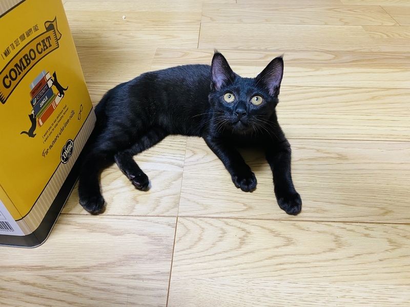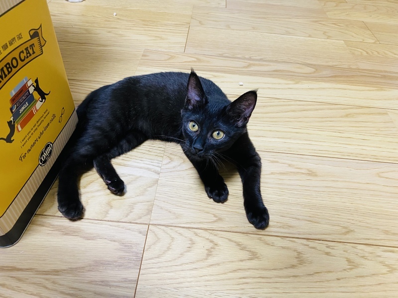 | 特徴(性格など) | 黒猫ですが生まれた時はスモークの様な感じでした。 性格は活発、猫見知りしてシャーシャーすることがなく、コミュニケーション能力が高い子です。 ウイルス検査、白血病共に陰性です。 ワクチン1回目済 ご飯はドライ、ウエット混合で卒乳済 シャンプーをしてお渡し致します。 |