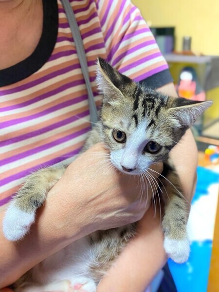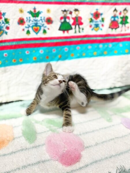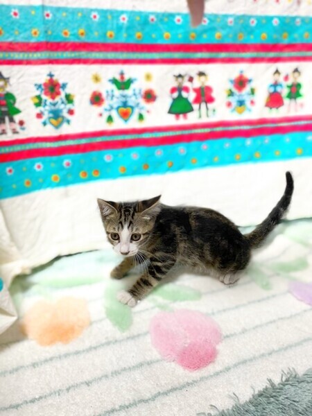 | 特徴(性格など) | 4/26産まれ キジシロ柄の男の子です。 人にも慣れています。 ぐうくんとは兄弟です。 可愛い盛りのテテくん是非見に来て下さいね^_^ 健康状態 元気に過ごしています。 ・ノミダニ回虫駆除済み ・エイズ(−)白血病(−) ・3種混合ワクチン接種済み |