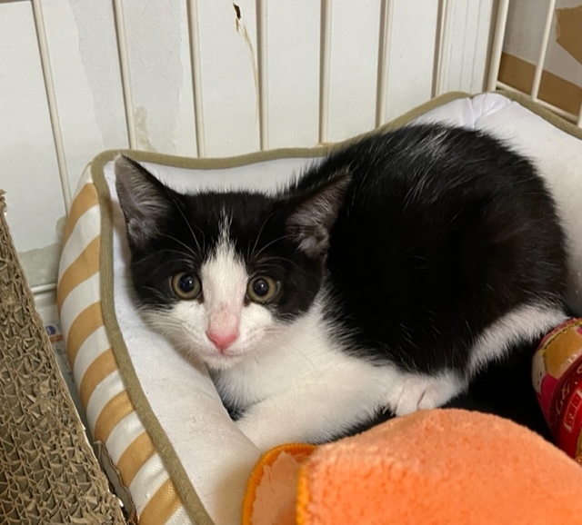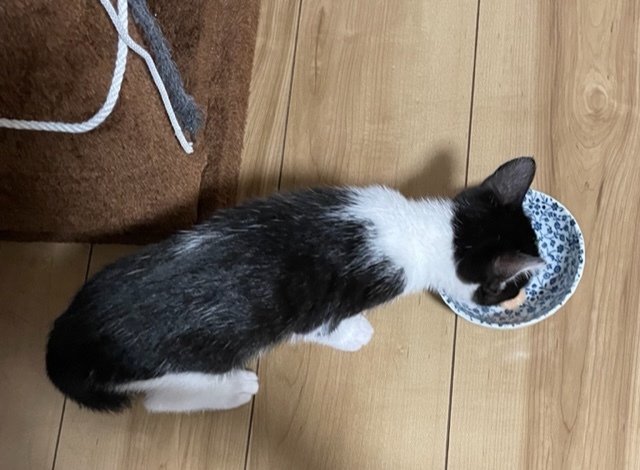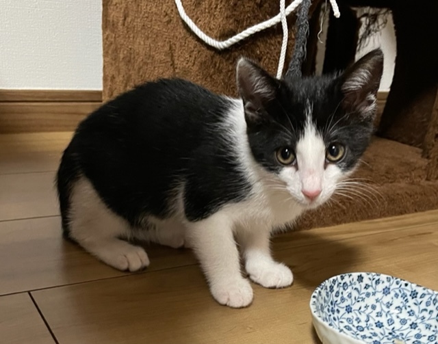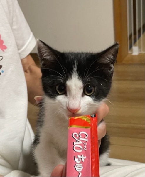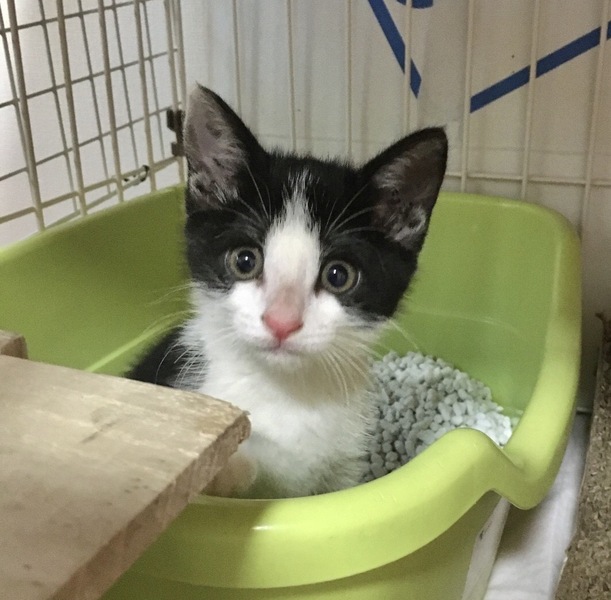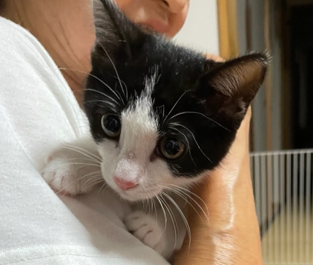 | 特徴(性格など) | 仮名)なつ 黒白はちわれの女の子 よく食べよく遊び元気いっぱいです。 とても慣れています。 |