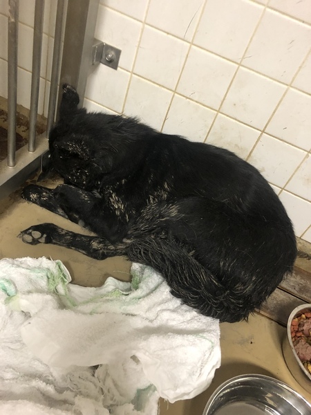 | 特徴(性格など) | 毛色…黒 大雨の翌日に収容されたため体はドロドロ 体はガリガリに痩せています 野犬は過酷な生活なんだと一目瞭然 怖さから動けずジッとしています 唸りも威嚇もなし |