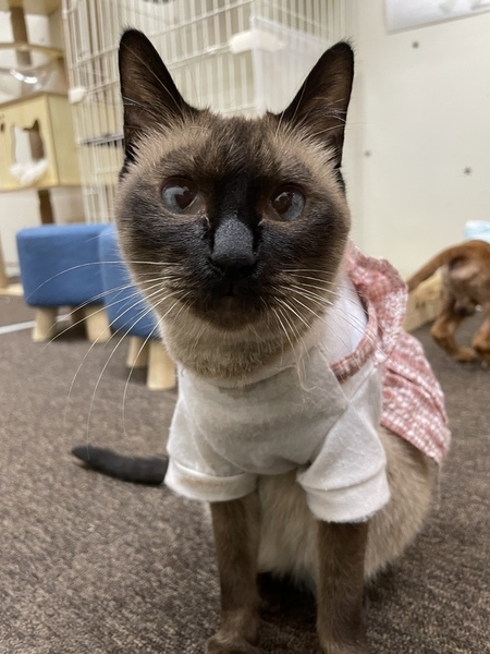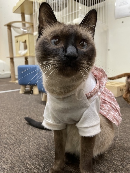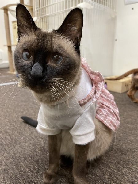 | 特徴(性格など) | いつもいつの間にか隣に来てくれて、なでなでしてもらうのを待ってる控えめで優しい女の子♡おもちゃ遊びも大好きです! 女子力高めでお手入れしすぎて皮膚が赤くなっちゃうのでお洋服着てます!何でも着こなしてくれるみんなのアイドルです♡ 初期医療済み(以下内容) 全身血液検査 問題なし エイズ/白血病 陰性 3種ワクチン 済み 内部・外部寄生虫駆除 済み |