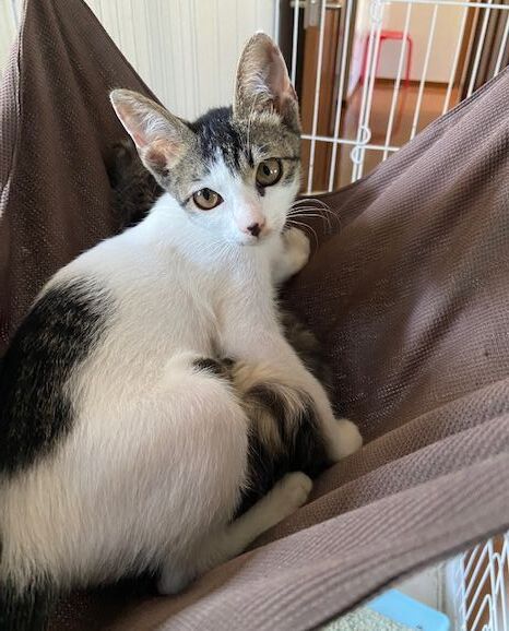 | 特徴(性格など) | キジトラ 毛足長め 女の子 尻尾先曲り短め 人馴れ修行中 よく食べ、よく眠り、よく遊びます。 |