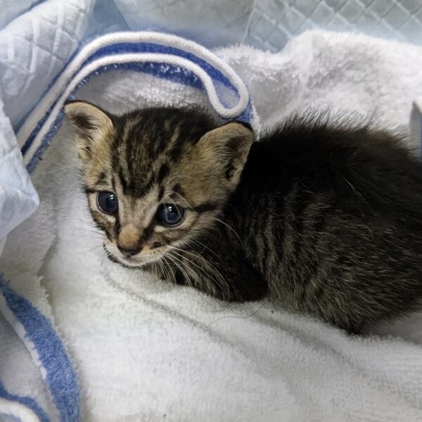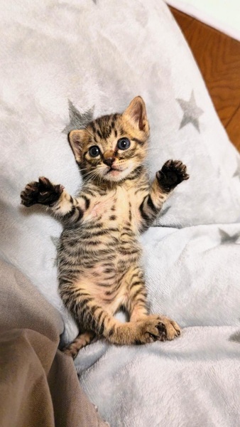 | 特徴(性格など) | お顔の柄がクッキリとした、キジトラのチビスケです。 血液検査で猫白血病・免疫不全ウィルスどちらも陰性、検便も問題なしでした。 |