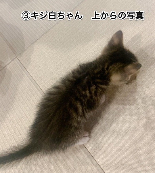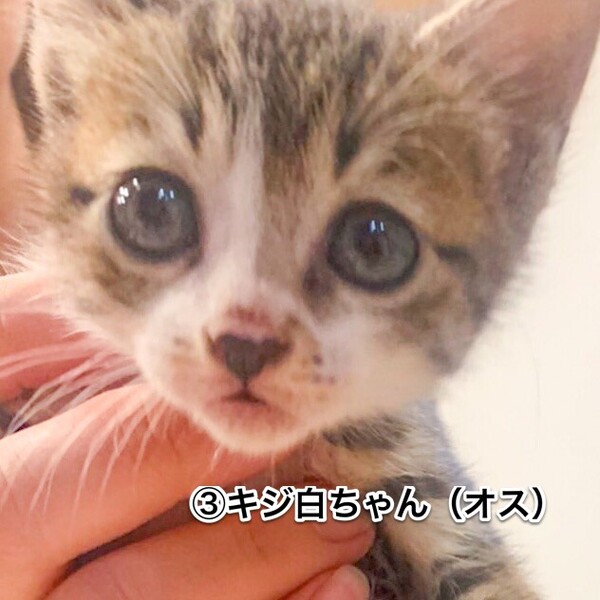 | 里親募集する理由 | 《代理投稿です》 会津若松市内の方から、敷地内に生後1カ月くらいの子猫兄弟がママ猫とともに移動してきてしまい、どうしてよいか分からないと相談を受け子猫たちを保護しました。 連絡のあった方のお知り合いが現在預かりお世話中です。 3匹とも、保護当日から元気でパウチから始まり今はカリカリも食べています。 病院受診し、回虫はいませんでした。 ネコ風邪がありましたが現在点鼻眼投薬でほぼよくなってきています。 ウンチもオシッコもすぐに覚えてくれました。 ★子猫のうちから兄弟一緒だと遊び相手にもなり、飼い主さんも大きくなってからのお留守番も安心なので、2頭〜など一緒の応募もお待ちしています♪ もちろん一頭のみでも大丈夫です! 尚、母猫も数日後捕獲器で捕獲出来き、現在お世話中で7月末に避妊手術予定です。 ※飼い主不在を確認済みです。 |