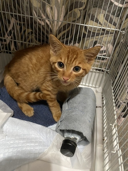 | 特徴(性格など) | 濃い茶トラの2〜3ヶ月の子猫です。 お母さん猫が恋しいのか猫好きです。 ビビりながらも触られたり撫でらるのが好きでゴロゴロが止まりません。 ご飯大好き。 トイレも完璧。 目を見つめてきます。 シッポが長くて真っ直ぐで喜ぶとピンと立ててリロリロ振って可愛いです。 |