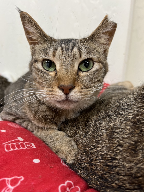 | 特徴(性格など) | 綺麗なキジトラ柄の女の子。 本当は甘えたですが、初期医療で通院したことがトラウマになっていましたが、今では克服して別人のようにデレデレ!! ナデナデが大好きな甘えん坊さんです♡ 少しずつ距離を縮める必要がありますが、根は甘えたさんなので安心できると分かればすぐに仲良くなれる子だと思います。 初期医療済み(以下内容) 全身血液検査 問題なし エイズ/白血病 陰性 3種ワクチン 済み 内部・外部寄生虫駆除 済み |