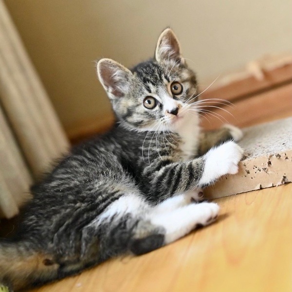 | 特徴(性格など) | まん丸のお顔につぶらな瞳、短めな手足、綺麗な白靴下を履いた大変愛らしいお姿。4兄妹唯一の男の子です。先に2匹の妹はおうちが決まったので、今回は姉妹のあやめちゃんと譲渡会に参加します。 遊ぶの大好き、いつも面白いことを探してうろうろしています。姉妹とのにゃんプロも元気一杯!食欲もすごいです。 人間に対してはまだ少し怖がっているところがあり、目があったり、手を差し出すととりあえず力のない、シャーを言います(笑)しかし、そのシャーがなんとも可愛らしく、あまりの威力のなさに笑ってしまう保護主です。 もう少し時間がたつと自然と言わなくなると思いますし、攻撃性は一切ありません。 これからどんな男の子に育っていくか楽しみです。 兄妹のあやめちゃんと仲良しなので、2匹一緒のお迎えも大歓迎です! また、健康管理・脱走対策はしっかりやっていただきたいと思っております。 対策等でわからないことはアドバイスさせていただきますので、疑問点などは遠慮なく聞いていただきたいです。 |