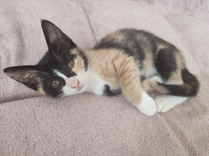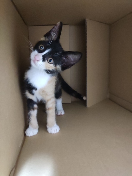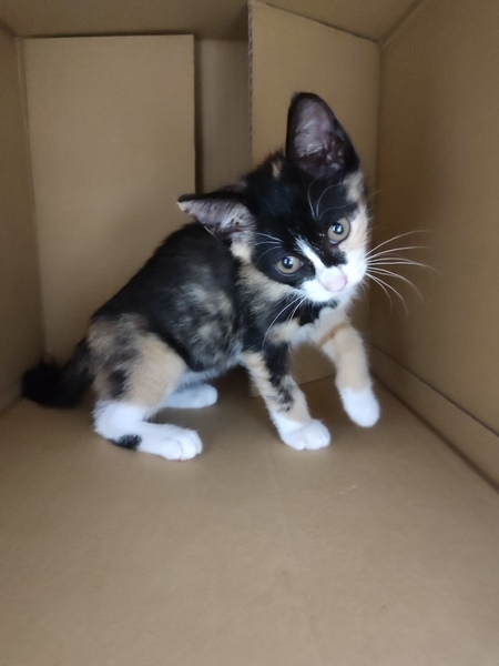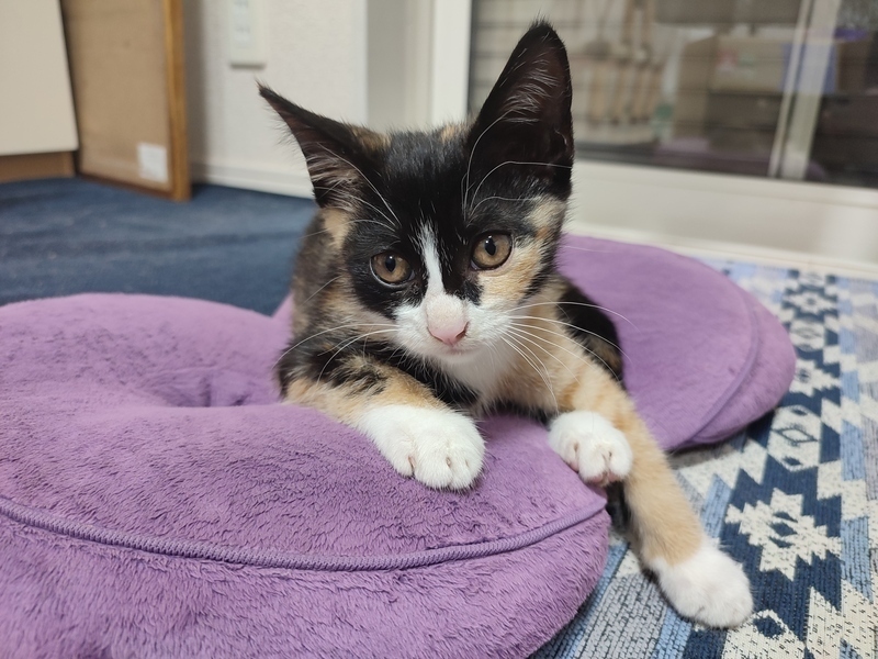 | 特徴(性格など) | とっても元気な三毛の女の子です。私の首周りで寝たりしています。ケージに食事する場所とトイレの場所を作り、一部屋を放し飼いにしています。よく遊び、私が、寝ている時は腕枕で寝ていたり、とっても懐いています。 | ||