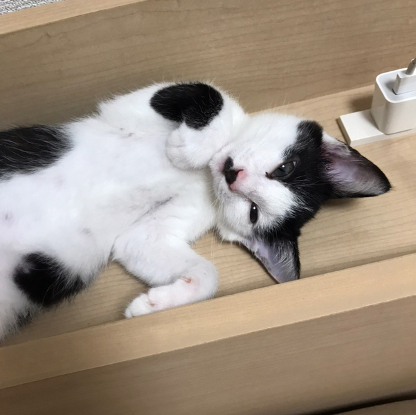 | 特徴(性格など) | 白黒で鼻黒。人なつっこくて可愛いです。 | ||