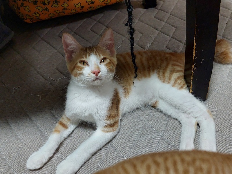 | 特徴(性格など) | 茶シロの男の子です。 おしゃべり好き。 人も大好きなゴロゴロの男の子です。 かなりの天然で、頭に水がかかっても気づかないくらいです。 しっぽは幸せを掴む可愛い?️カギしっぽです。 遊びも大好き。 遊んでくれると大喜びです。 トイレOK カリカリOK エイズ、白血病とも陰性です。 ワクチンは2回接種済みです |