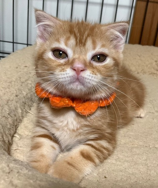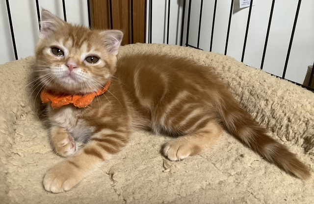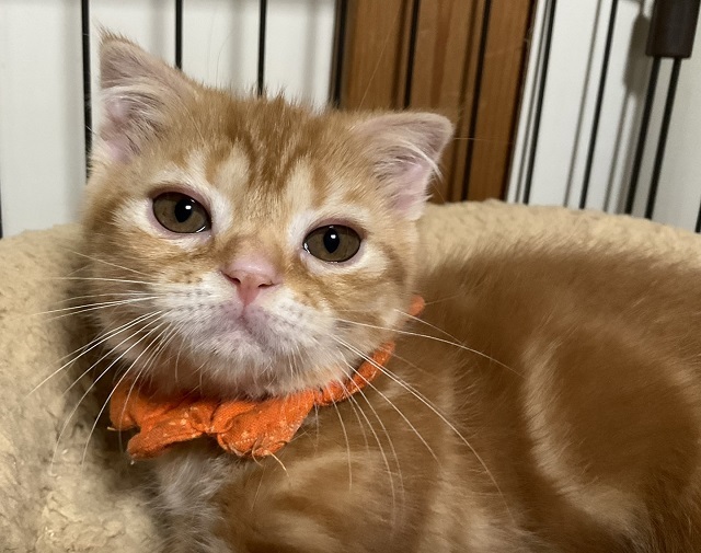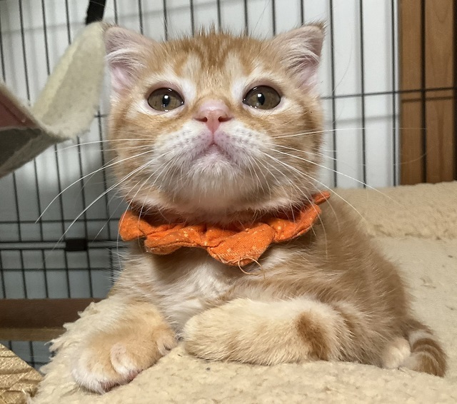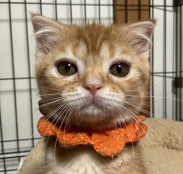 | 特徴(性格など) | ☆☆☆ご希望の方は、以下のアンケートフォームにご記入の上、送信してください☆☆☆ ねこ親希望アンケート→ http://chibawan.net/contactform_cat 【猫No】3519 【愛称】ふく 【性別】メス 【年齢】推定2ヶ月半(22/05/07頃生) 【毛色】茶トラ・折れ耳・真っ直ぐの長しっぽ 【体重】869g(22/07/26現在) 【状態】ノミダニ駆除済・駆虫中・猫風邪治療済・ワクチン1回接種済(22/07/07)・血液検査済(猫エイズ・白血病共に陰性) 【保護場所】野田市 【日記】http://instagram.com/kemikemi1206 【経緯】千葉県動物愛護センターから引き出しました。 【性格】こぼれ落ちそうな大きな瞳、折れ耳、横長のお顔、短いマズル、スコかアメショの血が入っているのではと思わせる風貌をしています。 勇敢な性格で、見知らぬ場所にも我先にと物おじせず飛び込んで行きます。 逃げ足がとても早いので脱走対策は入念に施す必要があります。 勝ち気で、内服や点眼など嫌なことをされるとやめて!と怒ります。 反面、人懐こく抱っこをするとゴロゴロと大音量で喉を鳴らします。 生まれた時からずっと一緒に育ってきた、兄妹のこうが良き遊び相手となっておりますので、こうと一緒に迎えて下さるご家庭を希望します。 兄妹一緒であれば、お留守番があっても寂しくないと思います。 (一匹のみをご希望の方は応募をご遠慮下さい) 育ち盛りのふくの日々の様子や、育児日記の悲喜こもごもなどをインスタグラムに毎日アップしています。 子猫との生活がどんなものか、また、ふくの性格なども垣間見えるかと思いますので、ぜひご覧下さい。 【補足事項】お届けは不妊手術・マイクロチップ装着・2回目のワクチン接種などの医療が終わり、駆虫が完了してからとなります。(22/08/10前後に手術予定です) 【その他】完全室内飼育で終生愛情を持ち、ふくに合わせた生活スタイルで暮らしてくださる方、脱走対策に細心の注意を払い、労を惜しまず入念に脱走対策を講じて下さる方、定期的なワクチン接種や、その時々において必要な医療処置等の健康管理を約束していただける方からのお問い合わせをお待ちしております。 可愛いふくに会いに、預かり宅までいらして下さい! ※ 大変申し訳ないのですが、子猫のため、55歳以上のみの世帯の方からのお申し込みはお断りいたします。 ※ 猫との暮らしが初めてのお子さまには、アレルギー検査をお勧めしております。 (短時間猫と触れ合った経験だけではアレルギーの有無はわかりません) 責任ある終生飼育には必要なことですので、ご理解下さいませ。 |