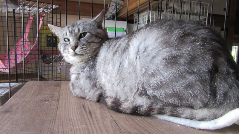 | 特徴(性格など) | サバトラ柄 丸々としていますが小柄です 人慣れは十分に出来ています。 遊ぶのが上手で、 遊んでほしくてゴロゴロ甘えてきます。 |