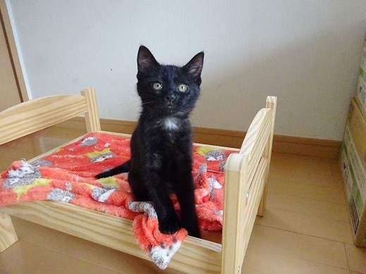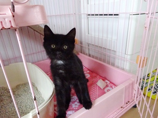 | 特徴(性格など) | 艶々の黒毛に 首とお腹に真っ白な毛がマークのように入っています。 とても甘える可愛い女の子です。 |