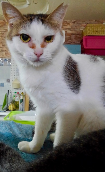 | 特徴(性格など) | ピーチ色したお鼻がチャームポイント、きじしろ子です 目周りはいつもこんな感じです 猫が好きな猫なので、 仲良しと貰われたらベスト(色々居ます!えーん!!) Ms. Pinky: 「ウェットフード食事中なら、触ってもよろしくてよ」 2 vacs, Revolution, テスト済(ー&ー) 猫のために猫飼いたい、気長に接してくださる方向きですが、 ボランティア宅の多頭環境を脱したら、大抵可愛いペットに化けます |