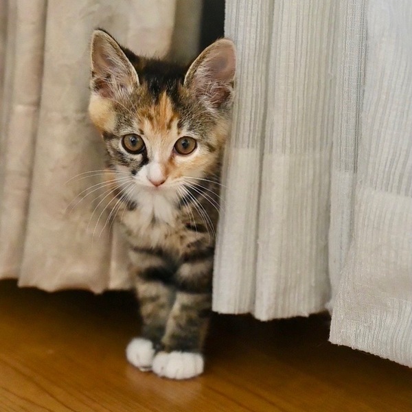 | 特徴(性格など) | 4兄妹の末っ子女子といった感じです。 マイペースでとにかく食欲がすごい! 兄弟の風太くんを押しのけて食べています。 保護主がケージに近づくととりあえず「ご飯ちょうだい!」とアピールしてきます(笑) 兄妹の風太くんとのにゃんプロも大好きですが、 一人遊びも上手にします。 とても綺麗なミケ柄の美人さんです。 まだ人間を見るとシャーしてしまうこともありますが、あまり力のないシャーなので(笑) これからもう少し人間との生活に慣れてきたら、 言わなくなると思いますし、シャー言ってる顔もとても可愛いです(笑) ゆっくりと見守っていただけるような里親さんに出会えたら嬉しいです。 また、健康管理・脱走対策はしっかりやっていただきたいと思っております。 対策等でわからないことはアドバイスさせていただきますので、疑問点などは遠慮なく聞いていただきたいです。 |