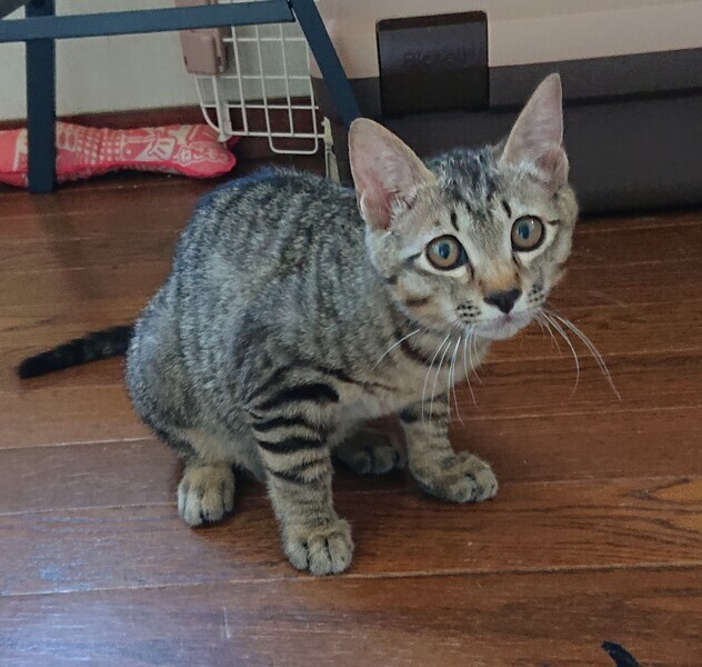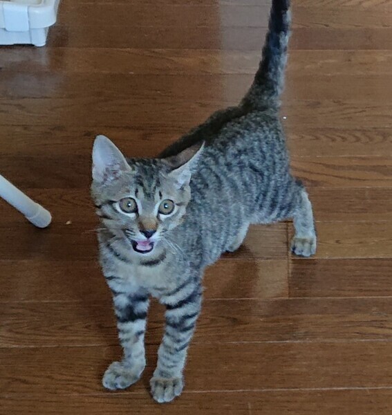 | 里親募集する理由 | 親子で捕獲器で捕獲されました。 親は手術後リリース、子猫たちは当時2ヶ月過ぎでしたので、保護して里親さんを探す事にしました。 親子でご飯をもらっていた場所は、猫嫌いの人間が多数周りにいて怖い思いをしていたようです。 その為、保護当初は全く人慣れしておらず、小さな体で必死に威嚇していました。 それから1ヶ月半、人慣れ修行は順調に進みました。 愛情を持って育てて頂ければ、きっともっとベタベタの甘えん坊になると思います。 どうぞ、温かいご家庭に迎えてやって下さい。 |