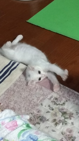 | 里親募集する理由 | 道路に横たわっていた小さな猫を保護しました。 一時は危険な状態でしたが、医療をかけて今は元気になり、 生後3か月くらい。 自宅には、保護犬2匹がいます。 わんこが猫を受け入れられずに、毎日にゃんこが威嚇されてしまっています。 これでは双方にストレスであり、出来れば猫が幸せに暮らせる環境で、 優しいり理解のある方にお譲りしたいと思っています。 |