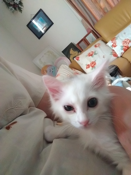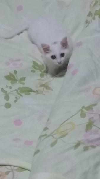 | 特徴(性格など) | 真っ白で頭頂部だけに灰色の斑点があります。 元気です。 |
