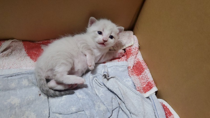 | 特徴(性格など) | 白い子ですが、うっすら虎模様になってます(^-^) | ||
