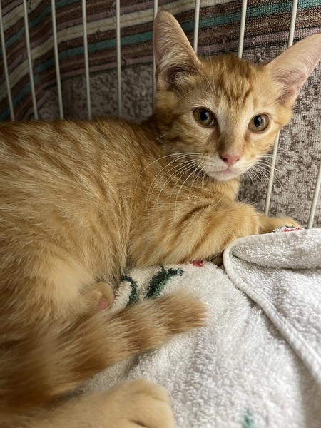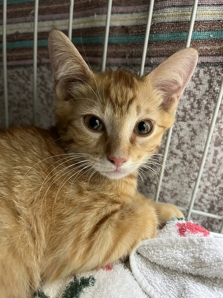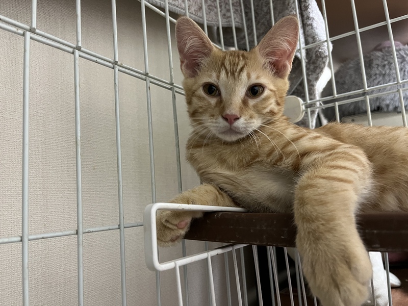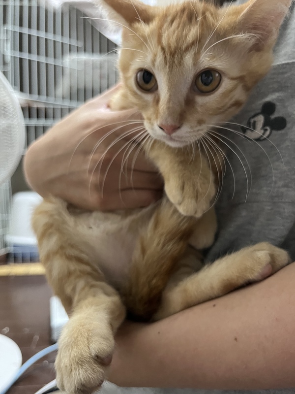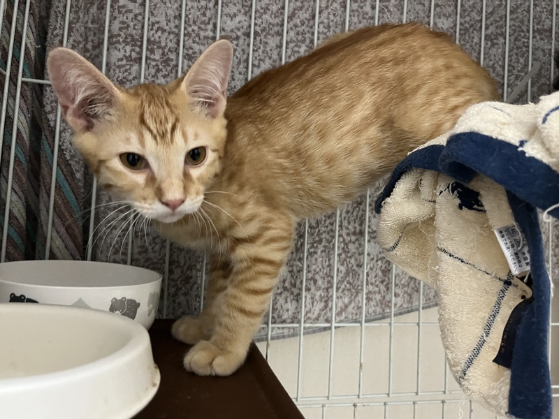 | 特徴(性格など) | 愛らしい顔のイケメン茶トラ 口元や首は白っぽく、色は薄めでかわいいです。 性格はわんぱくさん。触ろうとするとちょっとシャーと言ってしまうことも。 抱っこするとしばらくはされていますが、あまり好きではないよう。チュールは抱っこされたり手からも食べます。 威嚇してたと思ったら可愛い声で鳴き、顎を撫でると気持ちよさそう。 トイレOK。猫にはフレンドリーです。 まだベタベタに甘えてくるまでには多少時間がかかるかもしれませんが、それでもと言って下さる方、ぜひ幸せにしてあげて下さい。 |