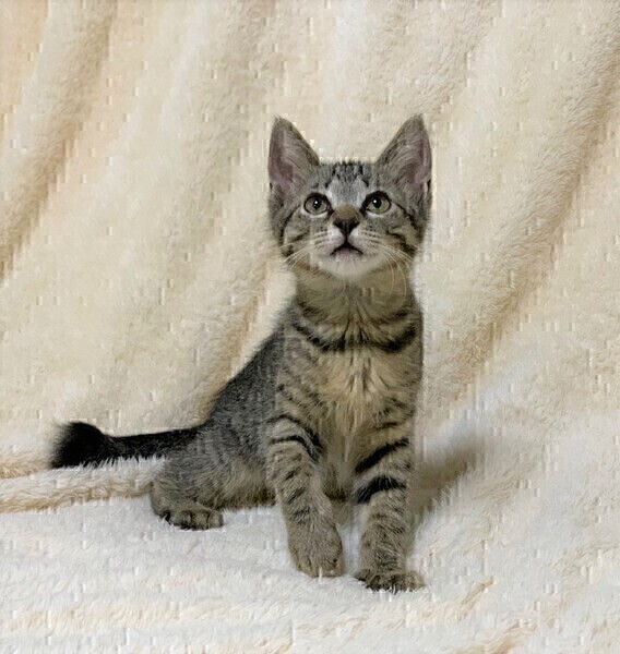 | 特徴(性格など) | 【仮名】クォーツ 【性格】お腹のドットが野性味あってカッコイイ!クォーツくん☆ 兄妹のスピネルちゃんを見習ってゴロゴロニャンコに変身中! 気づくと枕元にいるのでナデナデするとゴロゴロ言ってます♪ 遊びは他のコよりもオクテ・・というかドン臭いんです? でも一生懸命遊んでる姿はナントモ可愛いんです♪ 一緒に過ごしてい同世代にゃんこや 兄妹のスピネルちゃんとのお迎えを希望します♪ ※1ピキ譲渡応相談 |