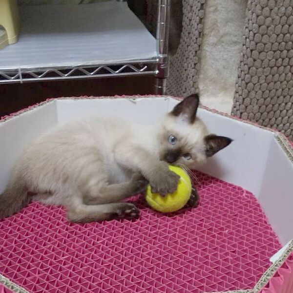 | 特徴(性格など) | ノミダニ駆除済み 検便駆虫済み ワクチン1回済み シャム系の男の子です。仮名は蓮くんです。 まだ急に動くと怖がることもありますが、抱っこをしたり触るとゴロゴロとのどを鳴らし、顔を見ると甘え声を出してくれます。シャム系あるあるですが、少しより目がキュート! 見ているだけで癒されますよ。 兄妹にキジトラの愛ちゃん(女の子)がいます。2匹一緒だと嬉しいですが1匹でも大丈夫です。 ネットが苦手な保護主に代わり代理で募集しております。(連絡先は下記記載) お問い合わせは下記の連絡先に「蓮くんの件」とお問合せ下さいませ。 |