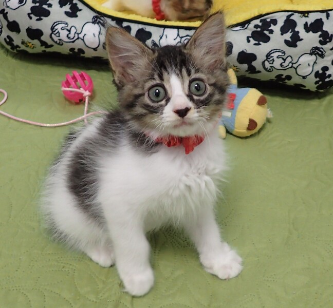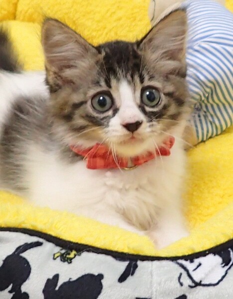 | 特徴(性格など) | ★★★東京・東銀座★猫の譲渡会★駅チカ2分東劇隣り★★★ 子猫ちゃん〜成猫ちゃんまで参加します ※掲載の猫ちゃんとのお見合いは譲渡会場になります。 事前のご予約は必要ございませんので当日会場へお越しくださいませ。 ◇会場のご案内・開催日時等、詳しくは下記をご覧ください。 猫の未来とびらホームページ http://nekonomiraitobira.com/ ★☆★「猫の未来とびら」譲渡会参加予定の猫ちゃんになります★☆★ ◇仮名◇ベラちゃん ◇毛色◇キジシロ ◇性別◇メス ◇性格◇ 5匹兄妹の1匹です。ベラちゃんは、びっくりしたような、困ったような顔の、可愛い子です。目の辺りの模様からそんな感じがするのかもしれません。半長毛で毛はふわふわ、お耳の毛もピンピンです。保護した時は小さくて一番弱々しい感じだったのですが、意外にたくましく、人懐っこく、存在感のある女の子です。まだ小さいので性格はこれからだと思いますが、明るい良い子になるだろうと想像しています。 譲渡会に参加予定の猫ちゃん一覧 http://nekonomiraitobira.com/archives/category/next |