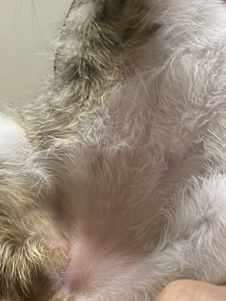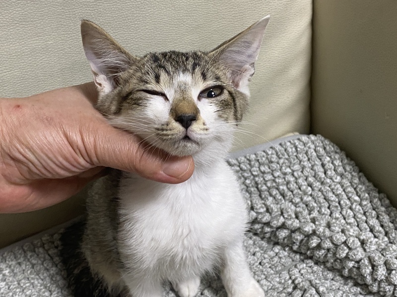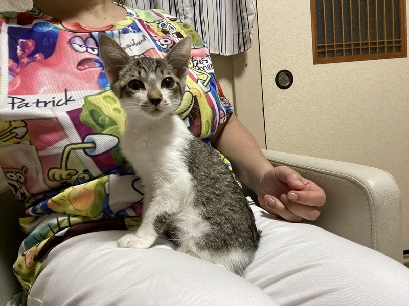 | 里親募集する理由 | 7月10日未明、生後2ヶ月ぐらいと思われる子猫をマンションの路地で発見。 見ると、お腹にひどい殺傷傷があり緊急保護し病院で治療し、現在は完治しています。 |