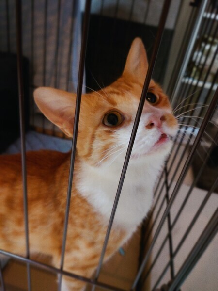 | 特徴(性格など) | ※現在検討中の問い合わせを受けております。場合によっては対応出来ない場合もありますがご質問等の問い合わせはお気軽にどうぞ! ◆性格や特徴 茶トラに白が可愛い美猫君です。とにかく人懐こく、誰にでもスリスリ攻撃で甘えます。獣医さんにもすぐに懐き診察もお利口でした。お手洗いと爪とぎはしつけ済です。 ※高崎警察署、動物愛護センターにて迷子確認済。 ◆健康状態 鼻炎があります。それ以外は健康で現在ワクチン接種済。8月中旬に去勢、下旬に2回目のワクチン接種予定です。(費用はこちらで負担します) また野良だったため、各種虫駆除剤投薬済(目視では綺麗でお風呂もお利口に入りました)。 ご希望であれば実際にあっていただく事も可能です! |