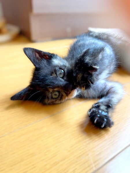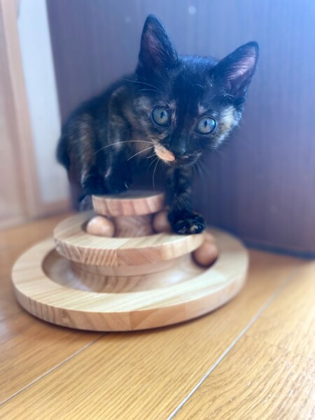 | 特徴(性格など) | 保護当時の体重は235g。兄のなぎくんより体重は軽いですが、ご飯もよく食べ、すくすくと成長しています(^^) 性格はとてもマイペースw ボールが回るおもちゃで一人楽しく遊んでいます♪ 兄のなぎくんも募集中です! ぜひ二匹に会いに来てください^^ ・ノミダニ回虫駆除済み ・エイズ(−)白血病(−) ・3種混合ワクチン接種予定 |