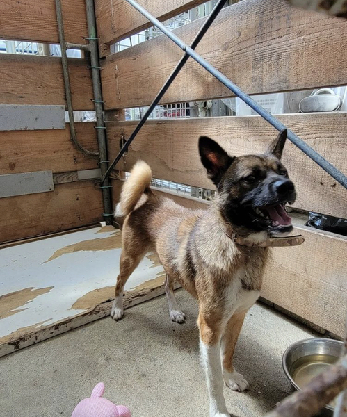| 特徴(性格など) | 毛色…茶黒白 まだ幼さがあり子供かもしれません とても怯えています |