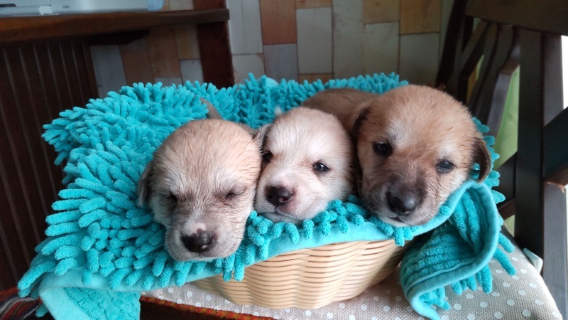 | 里親募集する理由 | 当方は野犬の多い地域です。 愛護センターに野犬が産んだ子犬が乳飲みで持ち込まれました。 成犬時は15kg程の予想です。 現在順調に離乳が進んでいます。 ふやかしフードにミルクをかけて食べさせています。 ミルクの時期から人の手で育てていますので、人懐こい子犬達です。 そろそろ初回ワクチン接種の予定です。 |