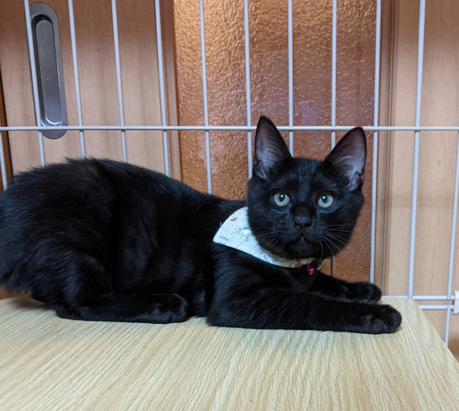 | 特徴(性格など) | 少しビビリな黒猫さんです。 しっぽ長いです。 ワクチン済み エイズ白血病検査共に陰性 駆虫済み |