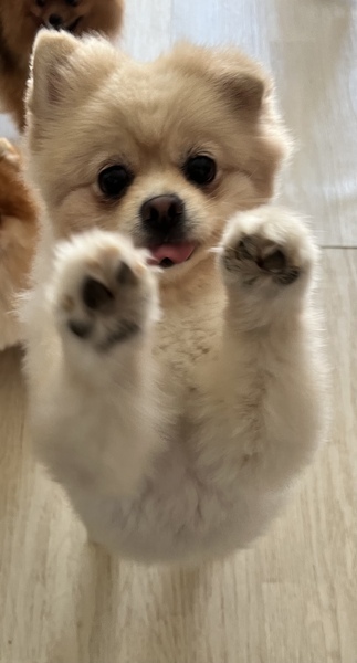 | 特徴(性格など) | クリームのポメラニアン。 デカポメちゃん。約6kg有ります。垂れ耳も可愛い? 穏やかで正義感の強い子。とても優しい子です。 話を良き聞いていて先読み行動も有り・考えて行動する子です。 信頼関係が築けるととても良いパートナーになってくれると思います。 お皿のお片付け、〇〇持って来て、でお手伝いもできます。 多頭飼いも適応できますが 自己主張が強い時もありますので、一人っ子。この子だけを溺愛下さるご家庭を希望します。 |