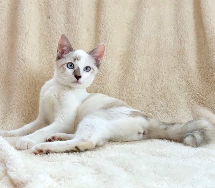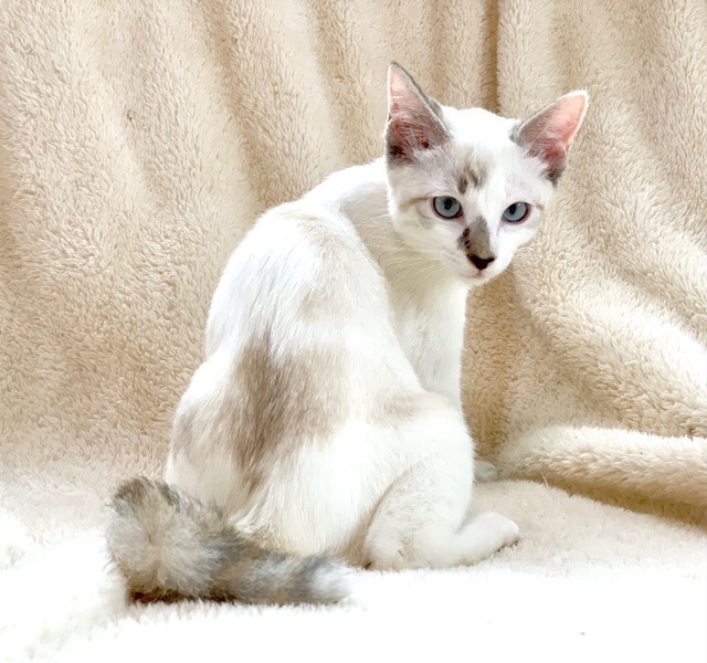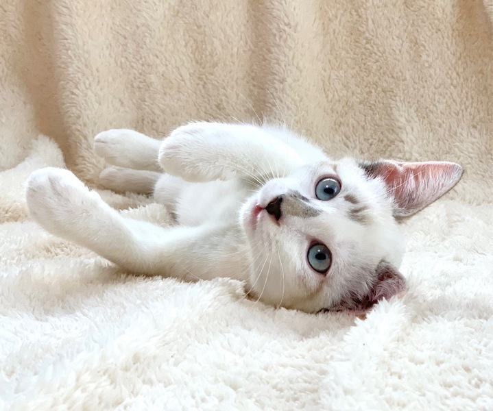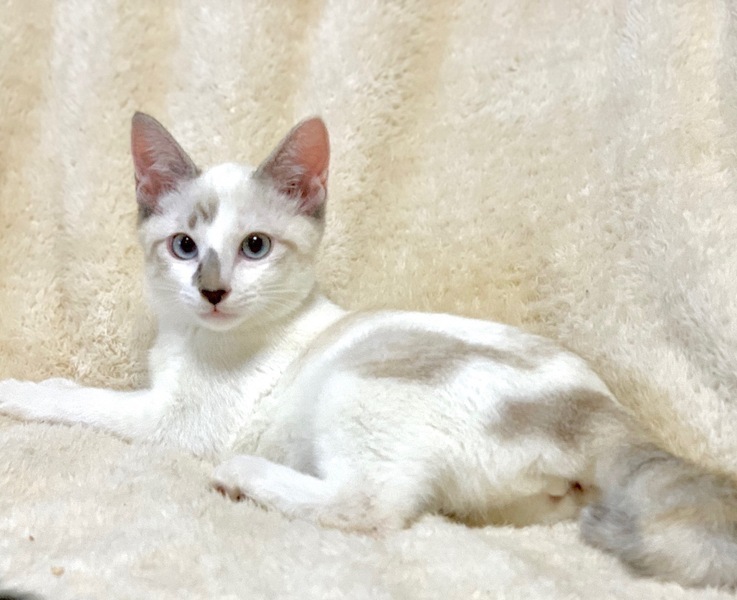 | 特徴(性格など) | 【仮名】モッツアレラちゃん 【性格】美しいブルーアイのモッツアレラちゃん♪ シャムMIXの出で立ちと相まって びゅーてふぉーにゃんこです♪ そして・・クタクタなんです? 抱っこしたら脱力してゴロゴロ(笑) 傍でびよ~んってなってゴロゴロ(笑) まさにモッツアレラのようにとろけるにゃんこですね♪ おもちゃ遊びには一定のヤル気を 出すのでご安心ください(笑) 兄妹か同世代にゃんことの ペアでのお迎えを希望します♪ ※リコッタくんと仲良しかな? ※1ピキ譲渡不可 |